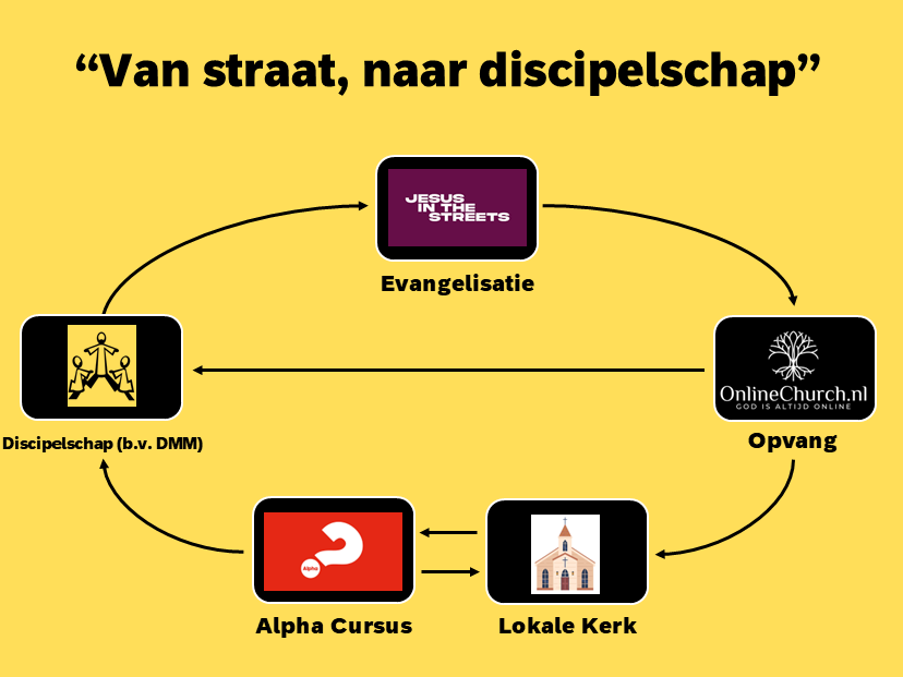 - Mensen die Jezus niet kennen, verbinden met christenen. In de vorm van (straat) evangelisatie en de opvolging daarvan.