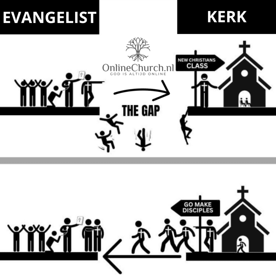 We zien onszelf als aanvulling op bestaande kerken en niet als vervanging daarvan. Uiteindelijk willen we helpen om mensen te leiden naar het vinden van aansluiting bij een kerk waar ze kunnen wortelen en groeien. Onderstaande afbeelding illustreert op een goede manier welke rol wij daarin voor onszelf zien: